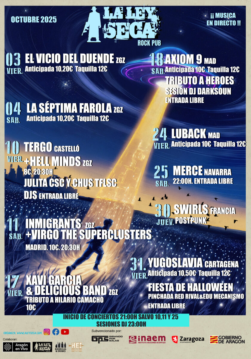 Encantados de colaborar con una de las salas más emblemáticas de la ciudad. ARCHIVO CON TODA LA PROGRAMACIÓN ENLACES, CARTELES… DESCUBRELO Y DISFRUTA, SI ES EN DIRECTO MEJOR 😎 LA LEY SECA-OCTUBRE-2025- FORMATO WORD: LA LEY SECA-OCTUBRE-2025-